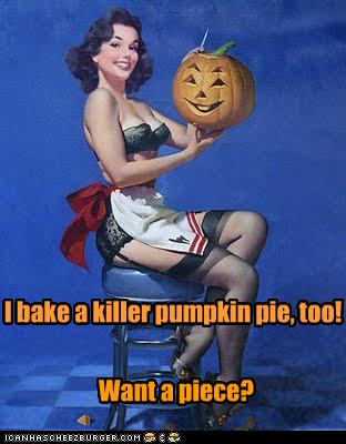 I do bake  a killer Pumpkin pie.   But I do not wear this outfit above while doing it…not a  pretty site. Now my wife has been known to wear many a risque outfits….she could definitely pull off the one above.